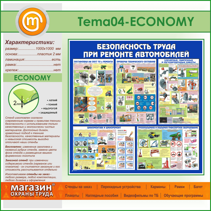 Стенд «Безопасность труда при ремонте автомобилей» (TM-04-ECONOMY) в Уфе купить
