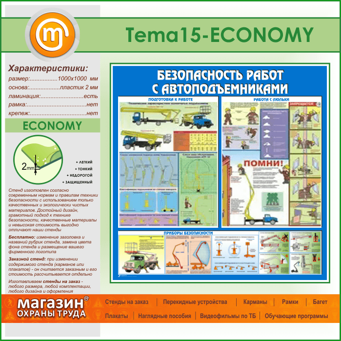 Стенд «Безопасность работ с автоподъемниками» (TM-15-ECONOMY) в Уфе купить