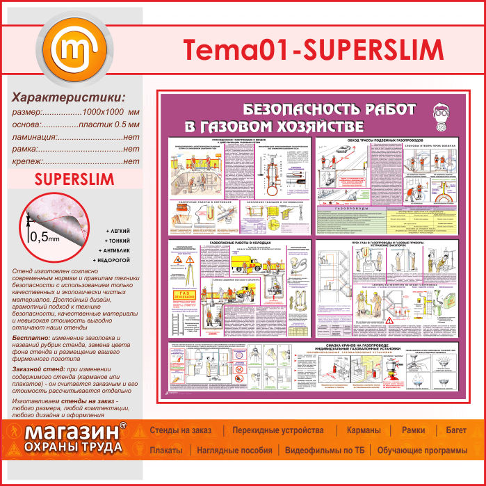 Стенд «Безопасность работ в газовом хозяйстве» (TM-01-SUPERSLIM) в Уфе купить