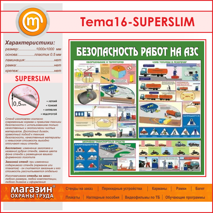 Стенд «Безопасность работ на автозаправочных станциях» (TM-16-SUPERSLIM) в Уфе купить