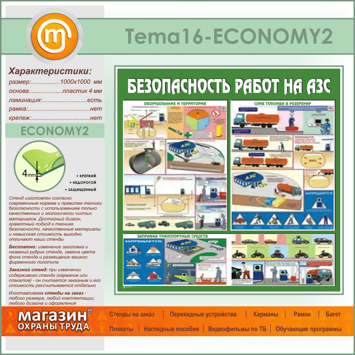 Стенд «Безопасность работ на автозаправочных станциях» (TM-16-ECONOMY2) в Уфе купить
