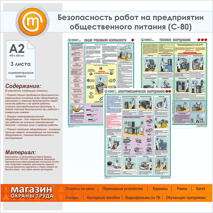 Плакат « Правила охраны труда на предприятии общественного питания» (С-80, ламинированная бумага, А2, 3 листа) в Уфе купить